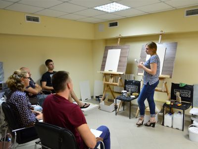 В "Декомире" 21 августа прошел семинар для начинающих декораторов. Каждый декоратор получил по 4 образца декоративных покрытий, сделанных собственноручно, диски с мастер-классами по нанесению. А также унесли с собой целый багаж знаний о том, как должны быть подготовлены стены под каждое покрытие, каким грунтом лучше всего грунтовать и почему, о видах и качестве красок и декоративных штукатурок и многом другом.